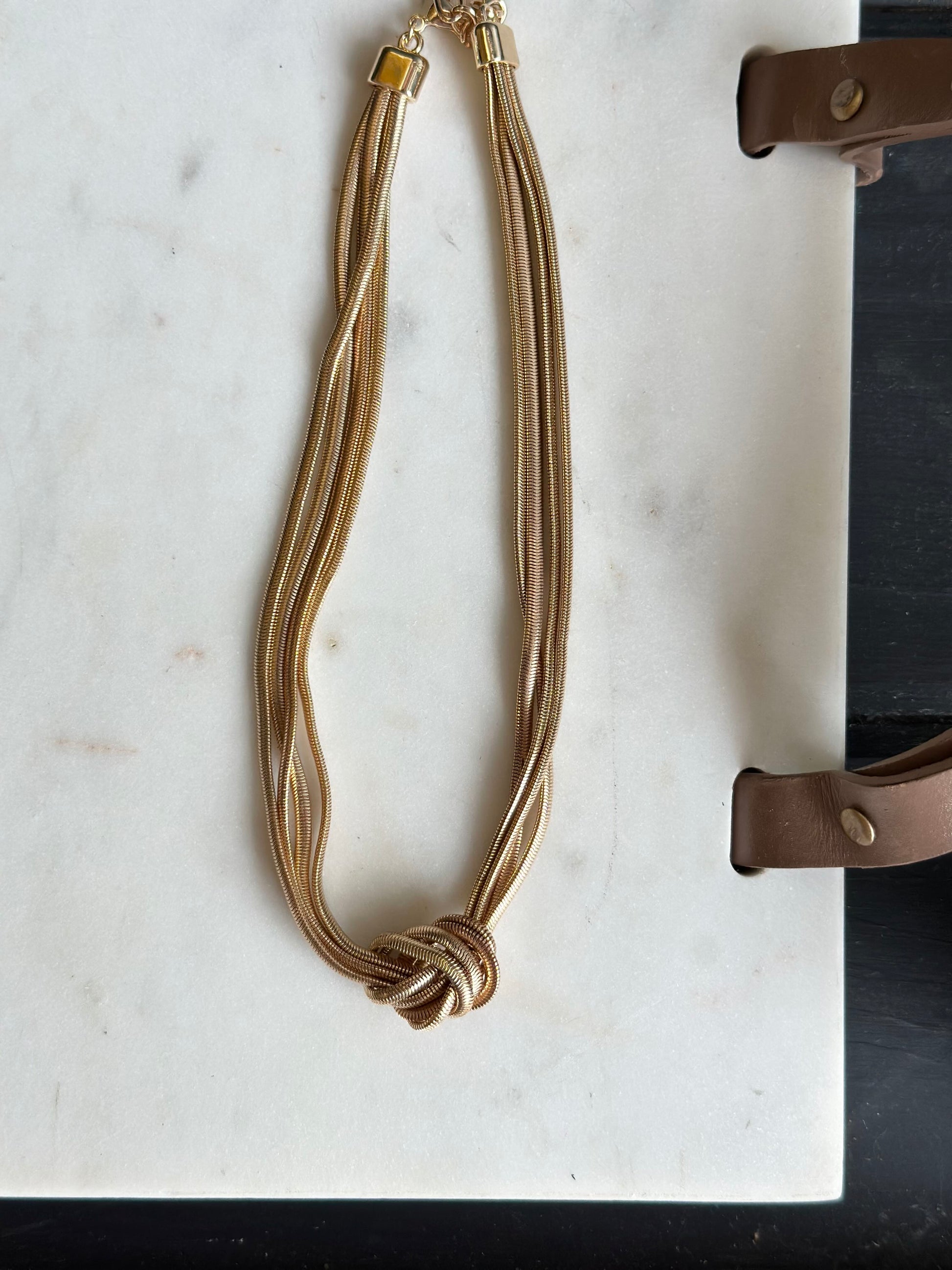 4 layered knotted snake chain necklace