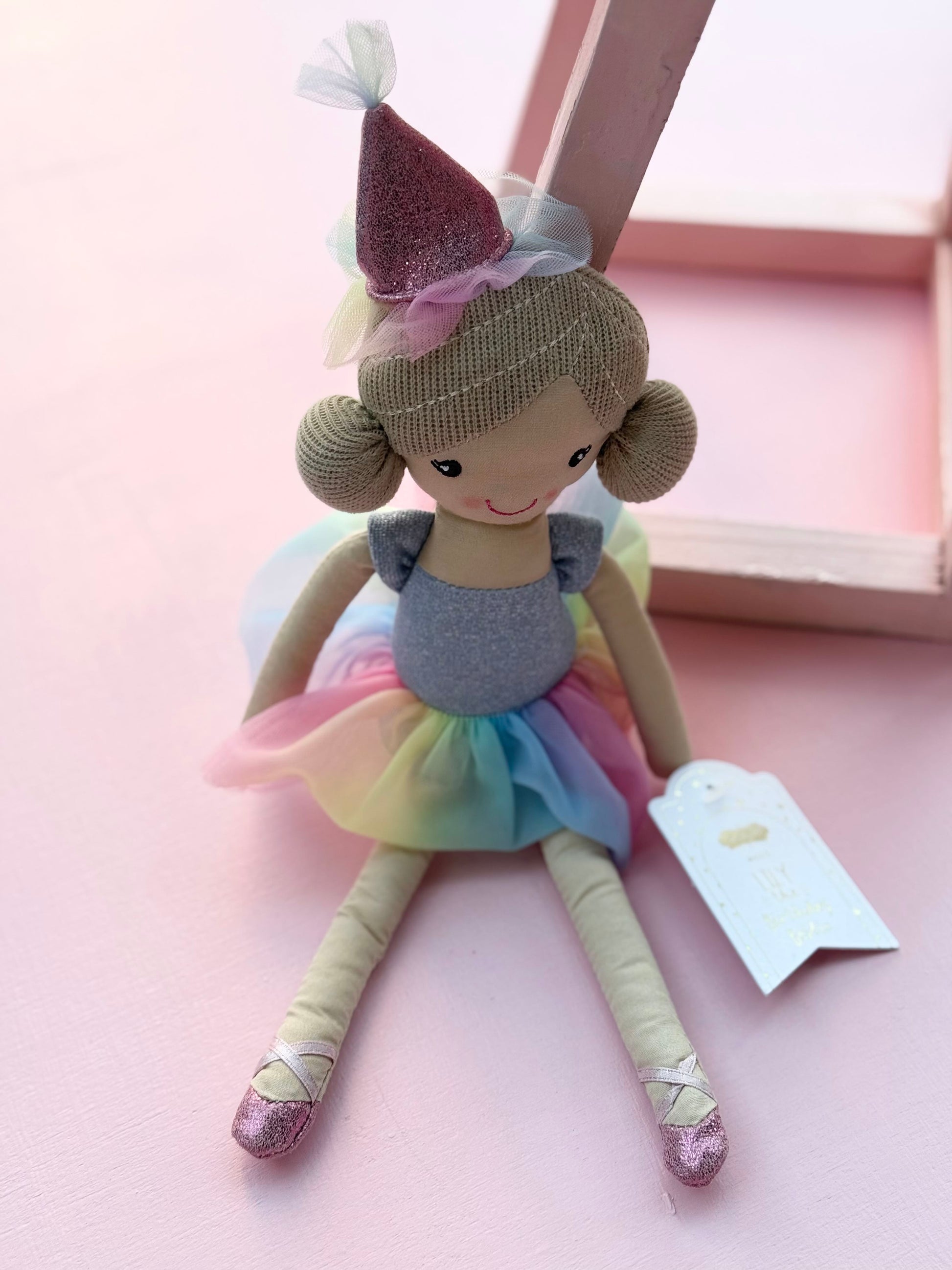 It’s party time, and your new bestie is ready to celebrate you! Meet the Birthday Besties—four cuddly, colorful dolls who can’t wait to join your birthday fun. Each one has her own style, personality, and party hat, so the only question is... which one will be your new BFF? There’s Chloe with her lovely brown hair, always ready for cake and giggles. Lily has soft sandy hair and loves throwing confetti. Holly’s bright orange hair matches her big birthday energy, and Dottie with her bouncy blonde hair is all about hugs and happy dances! Pick your perfect party pal and get ready for the best birthday ever! 1 Faux Linen Doll Dimensions: 11" 4 Style Options: Chloe, Lily, Holly or Dottie