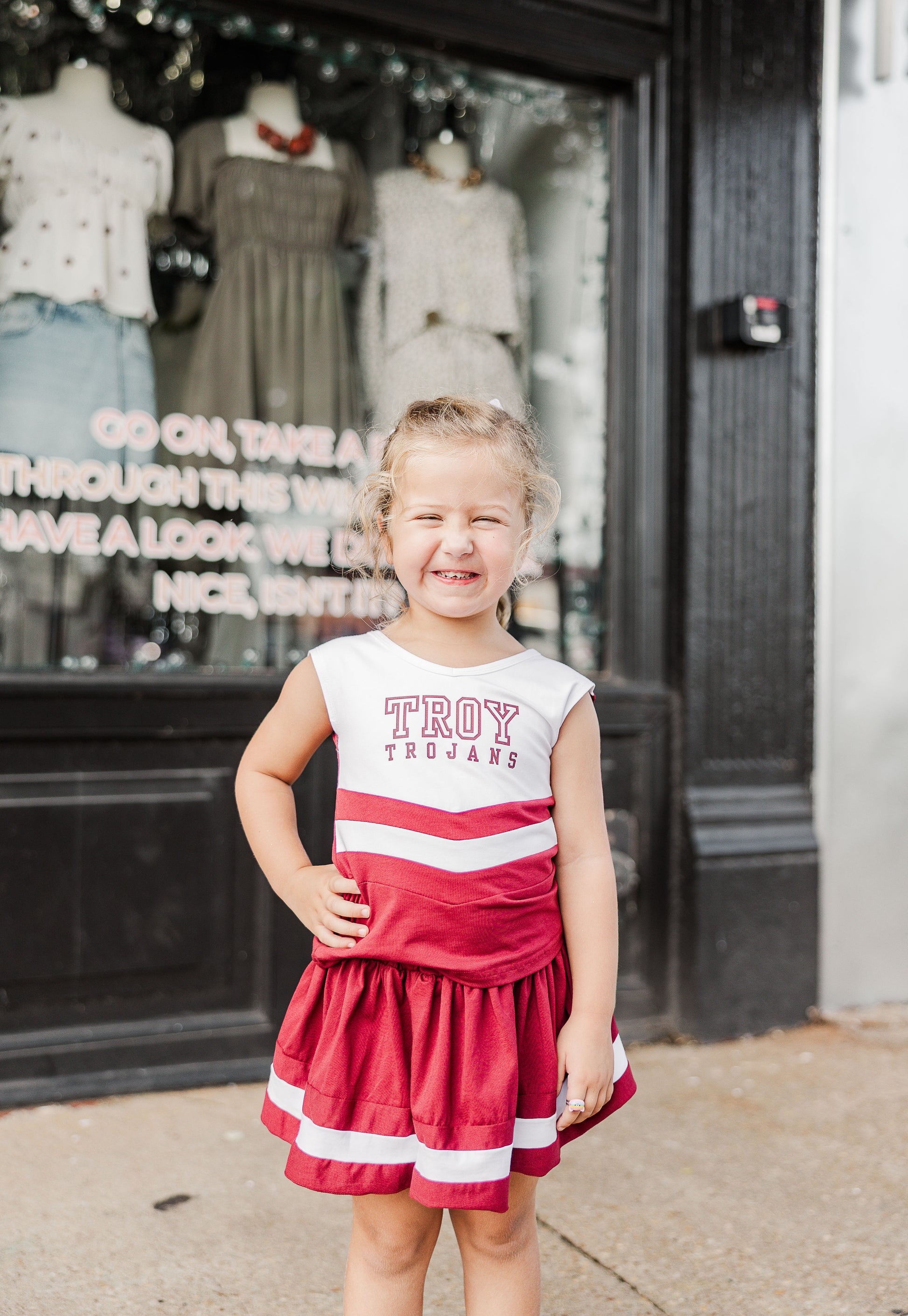 The perfect way for the little ones to cheer on our trojans! Soft two piece cheer uniform