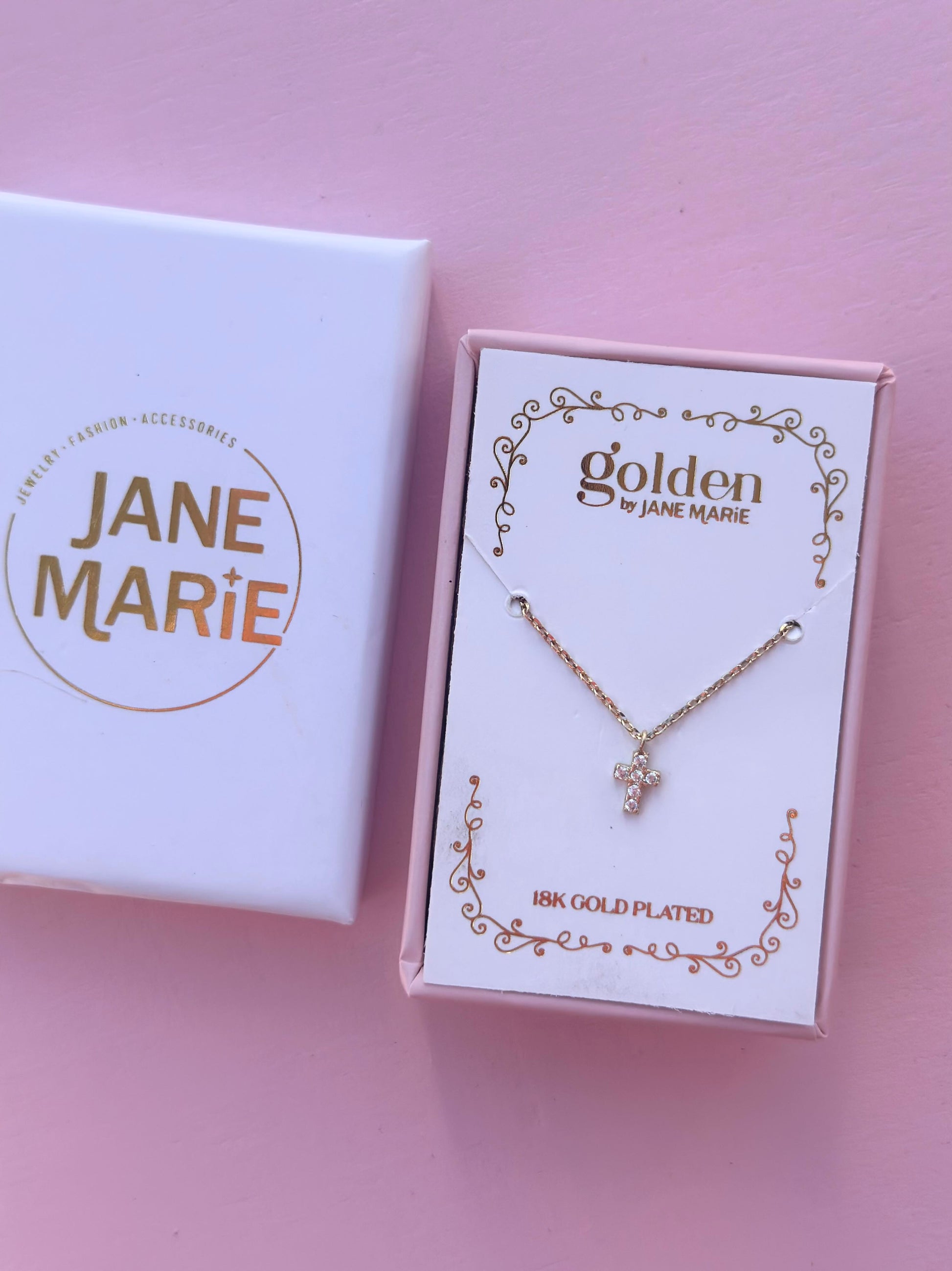 mini crystal cross necklace - 18K gold plated