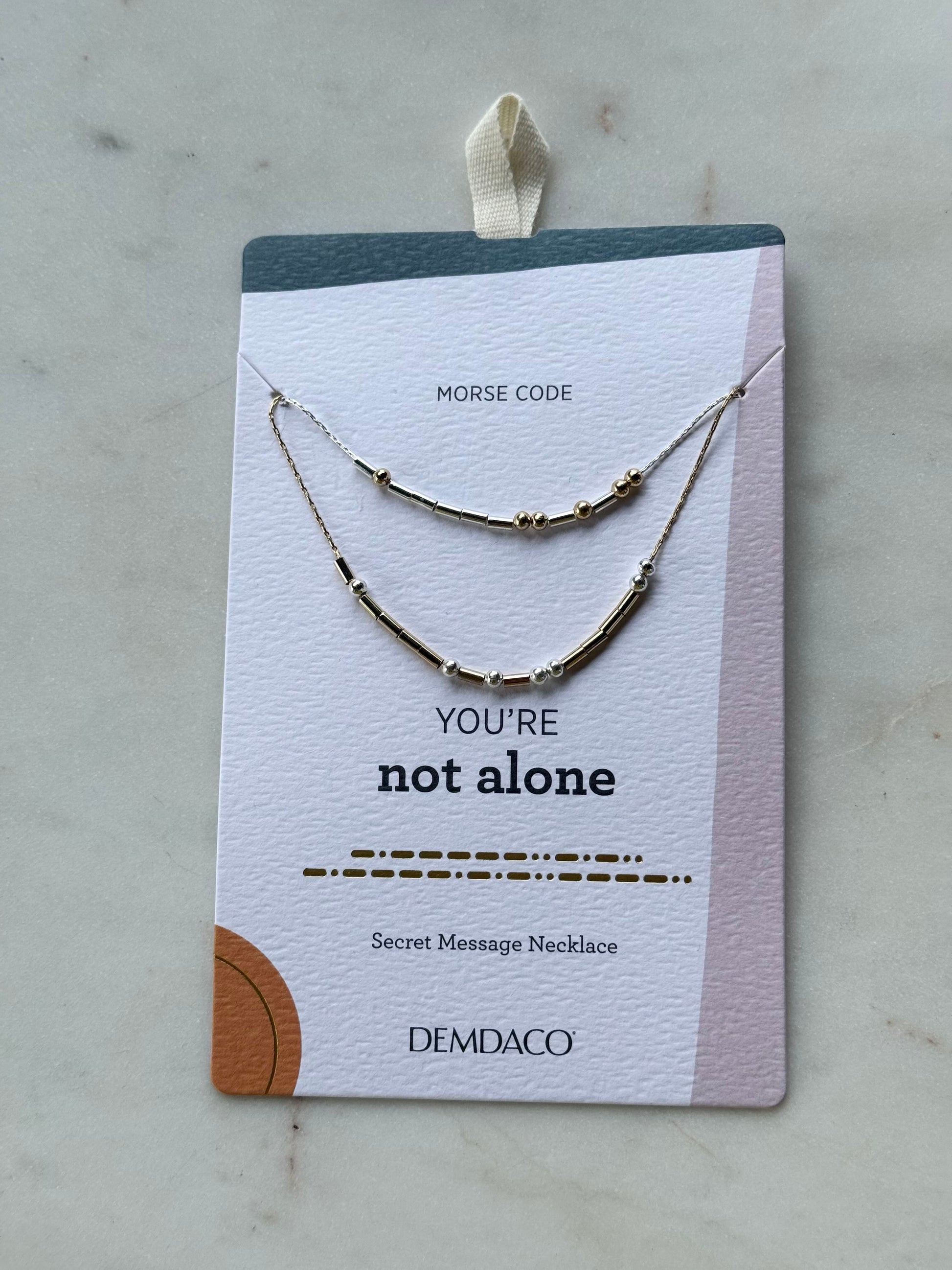 morse code necklace - you're not alone. Keep this message close to your heart. 16" + 18" with 2" extender