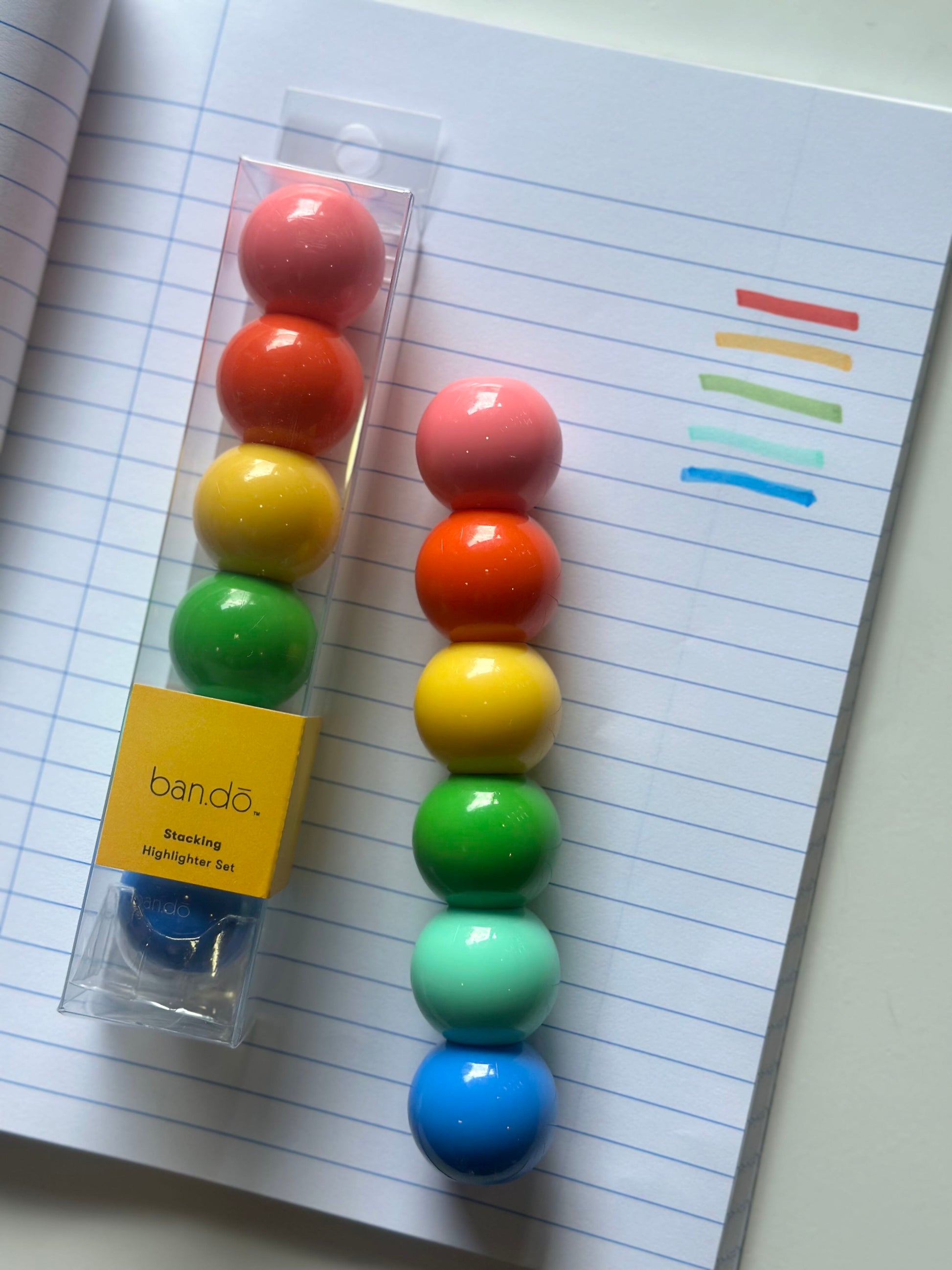 When a single color highlight just isn’t cutting it. This has five different colors in a cool stackable design. The details- 6.5 in. x 1.1 in. 5 different color highlighters Each highlighter can be stacked