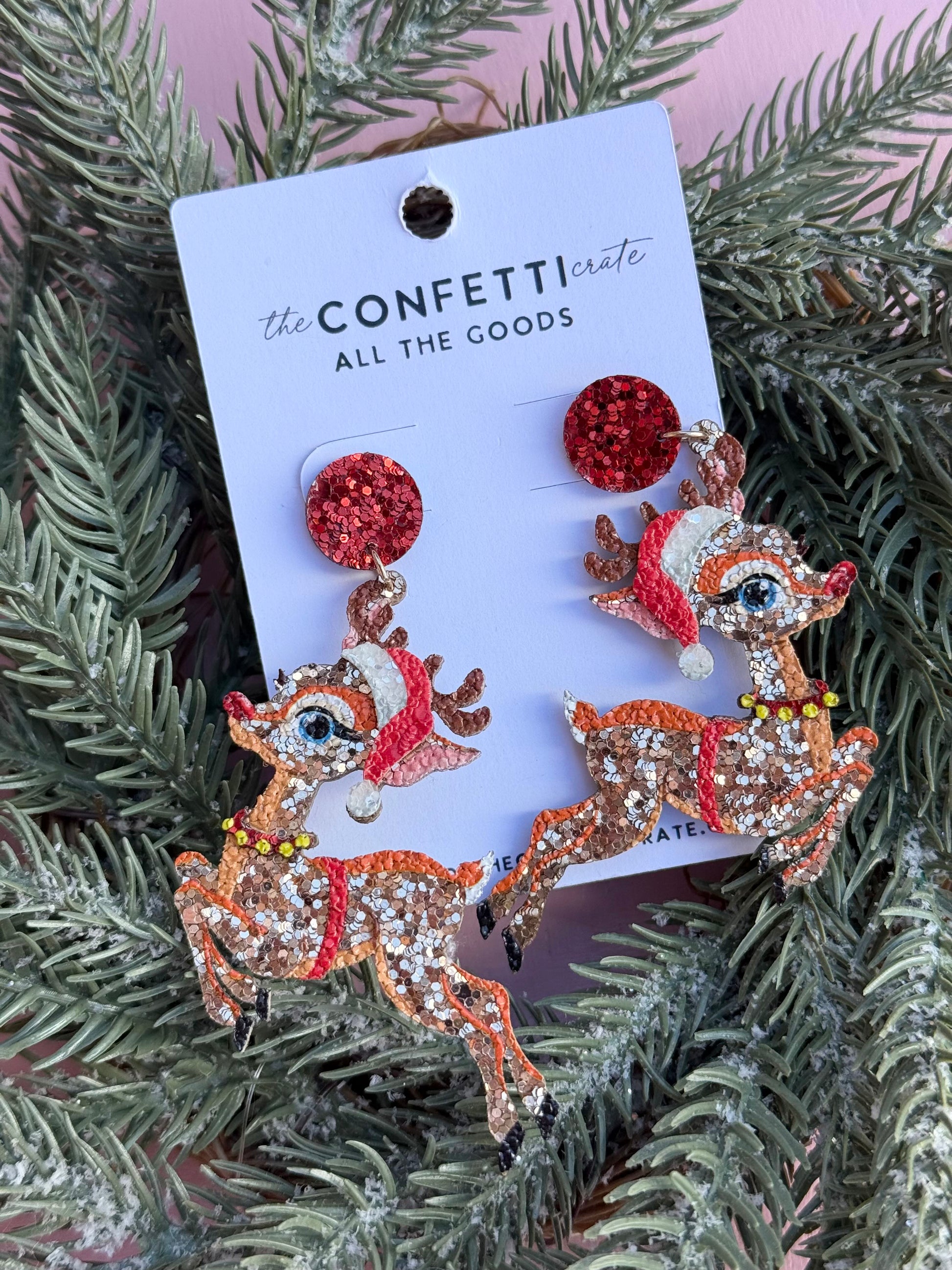 christmas rudolph glitter drop earring