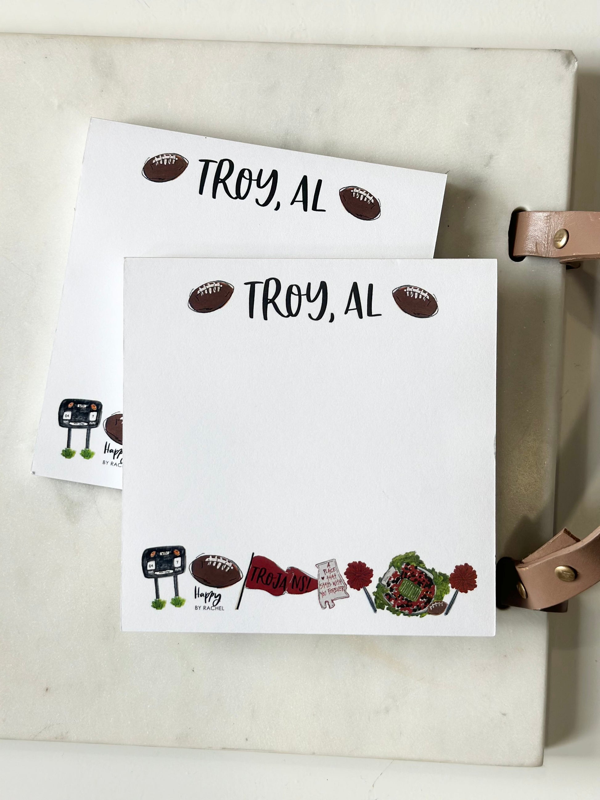 Jot down your notes on this cute Troy, AL chunky notepad! Makes a great gift! Measures 5"x5" and contains 100 pages.